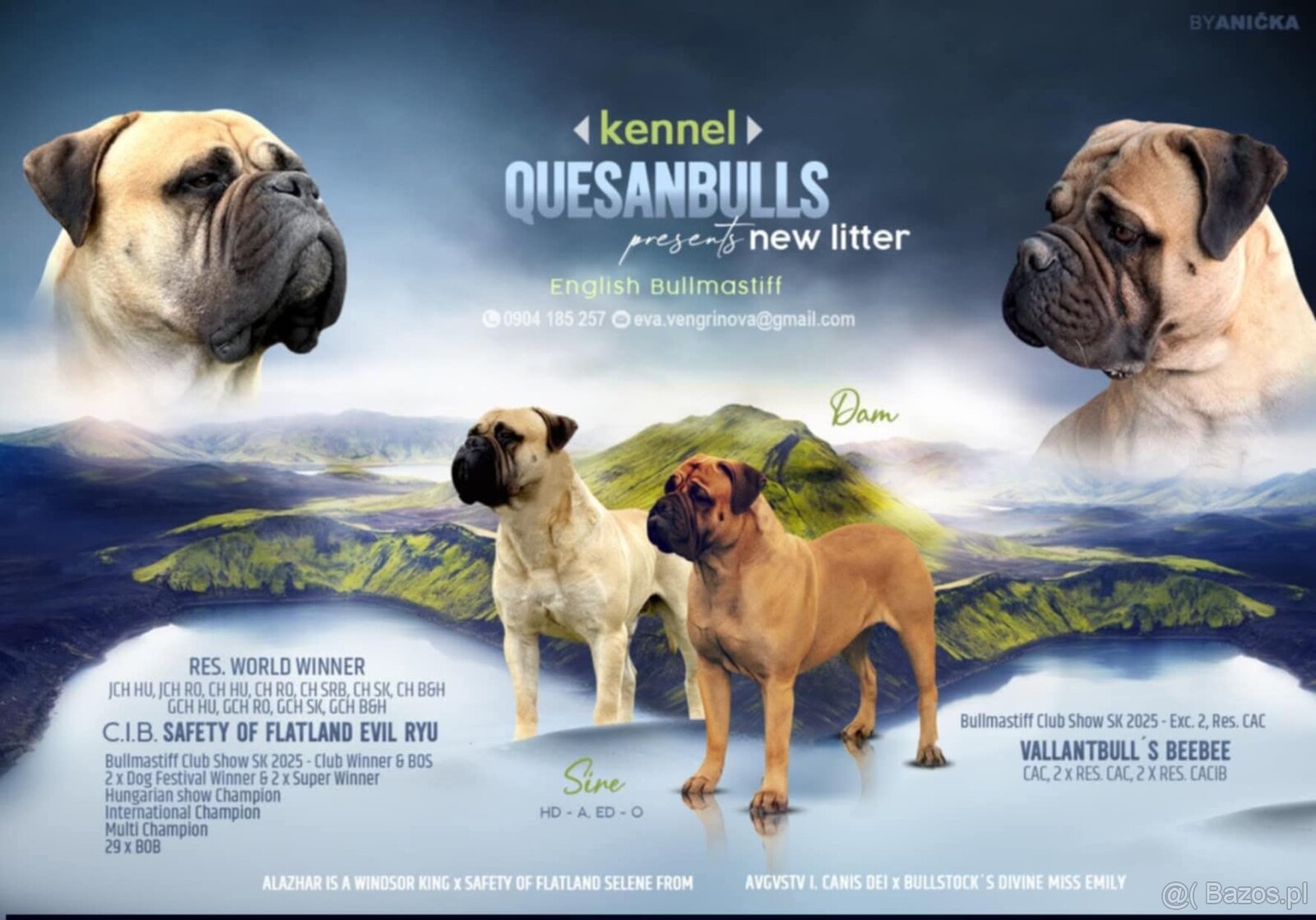 Hodowla Quesanbulls oferuje szczenięta rasy bullmastiff po rodzicach, którzy odnieśli sukcesy wystawowe. Szczenięta urodziły się 12.11.2025 roku po kryciu